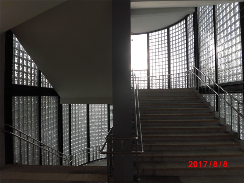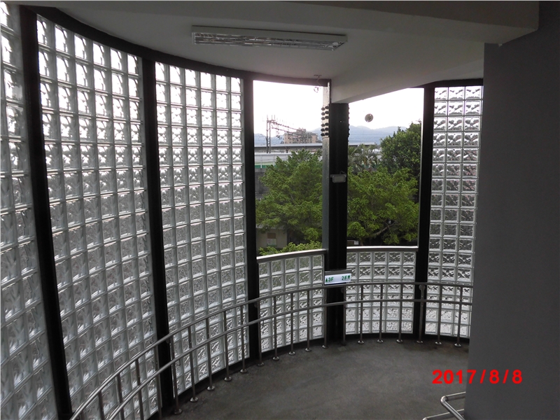 樓梯外牆採(cǎi)義大利進(jìn)口櫻王玻璃磚帷幕